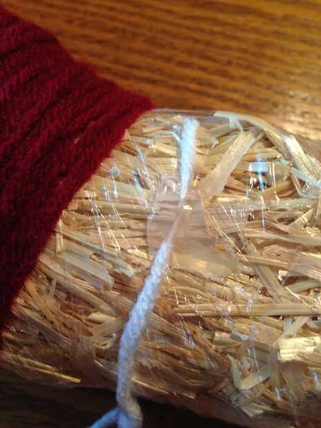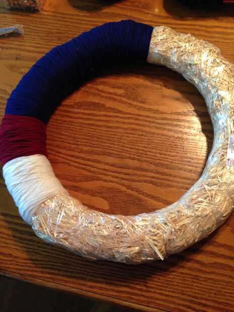 Cuando envuelve el hilo alrededor de la corona de paja, que desea probar y ser coherentes con las dimensiones de las franjas rojas y blancas, haciéndolos lo más cerca en tamaño entre sí como sea posible. Una vez más, puede envolver varias capas de hilo, pero probar y ser consistente con los otros para darle un aspecto más uniforme.