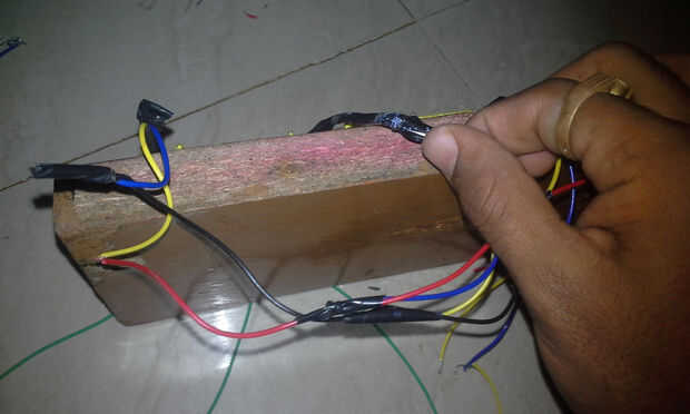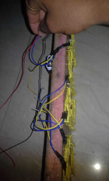 Tuve que perforar el tablón de madera y hacer el cableado para una led, pero otros LEDs se pegan en los bordes de la tabla.