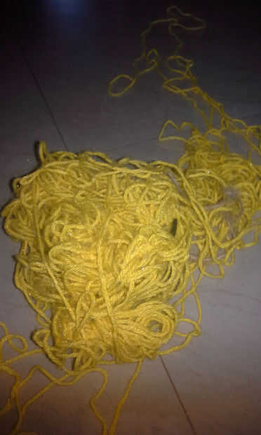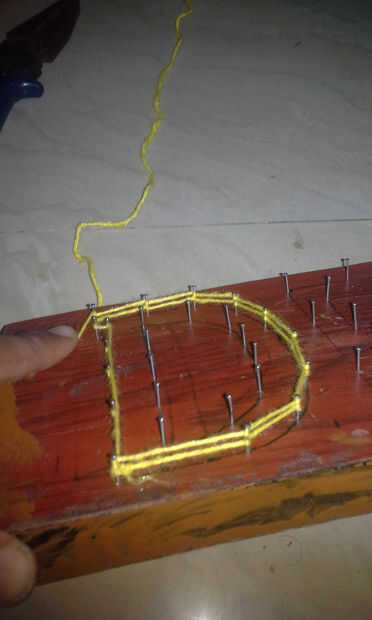 En primer lugar, un nudo sobre el uso de tres a cuatro veces el hilo de lana y lazo luego el hilo con el conector consecutivo siguiente y luego al siguiente, seguir adelante y hasta que han cubierto los bordes del patrón al menos dos veces.