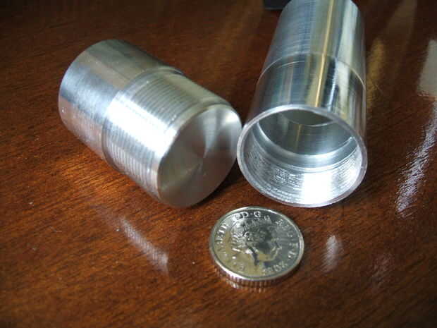 En general, no estaba contento con la calidad del acabado. No tomar un pequeño 'pulido corte' al final de la corte de hilo, y algunos de mis profundidades de corte eran demasiado grandes, estoy seguro. Esto significó que el aluminio tuvo algunas rebabas y un acabado más pobre que yo hubiera querido.
