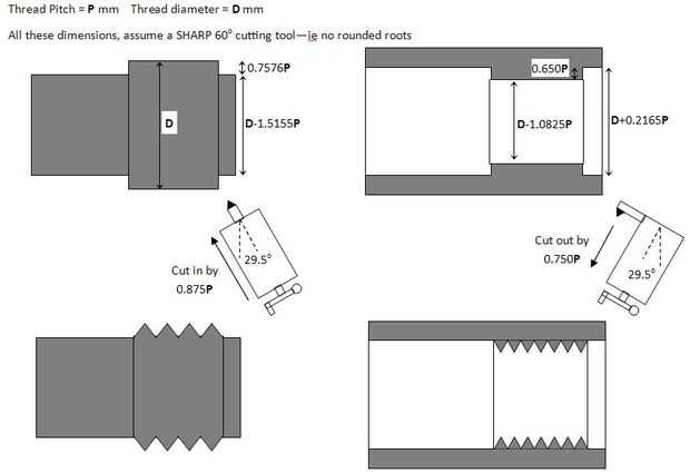 Haciendo caso omiso de todos los detalles de las matemáticas. Seleccione un paso y diámetro, obtener una calculadora y enchufe los dos valores en las fórmulas en el diagrama anterior. Para evitar resultados estúpidos, asegúrese de hacer la multiplicación de bits primero (por ejemplo 1.5155 x P) luego hacer la suma/resta!