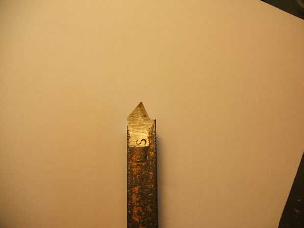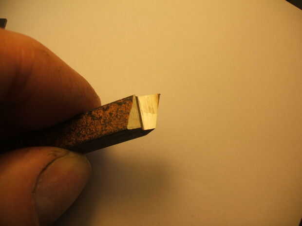 La forma parecía ideal, con un sesgo que significó que pude configurar el poste de la herramienta en el ángulo perfecto de corte cerca del mandril (véase paso "corte el hilo de rosca externo").
