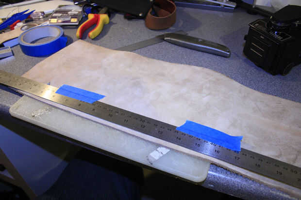 - Con algunos retazos de cuero o papel de tarjeta añade algún apoyo debajo de su regla para corte