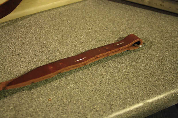 Se puede ver que con mi correa he utilizado una grapadora normal, como se puede ver, sólo dos de mis grapas entraron en, y apenas entraron, lo puedes hacer con una grapadora normal, pero uso una grapa pistola si tienes!