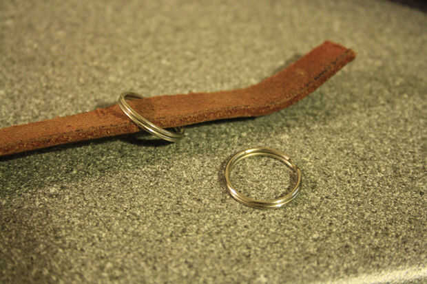 Coloca uno de tus llaveros en la correa de donde marcaste. Plegar la cinta para que se pliegue en la línea donde está el llavero.