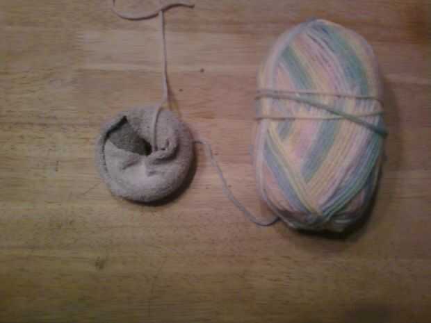 Otra versión de un Instructable hice.Paso 1: Lo que necesitará1. algunos hilados2. gancho de ganchillo (es 4.25 mm)3. un calcetín agujereado enPaso 2: principio...Comience con un nudo deslizante en su gancho y bucle del hilo a través del "agujero de