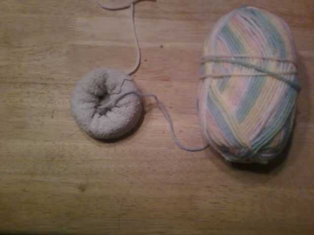 El calcetín del rodillo en forma de un rosco (no sé todos los calcetines agujereados acomodará esto pero tengo otra técnica para esas situaciones).