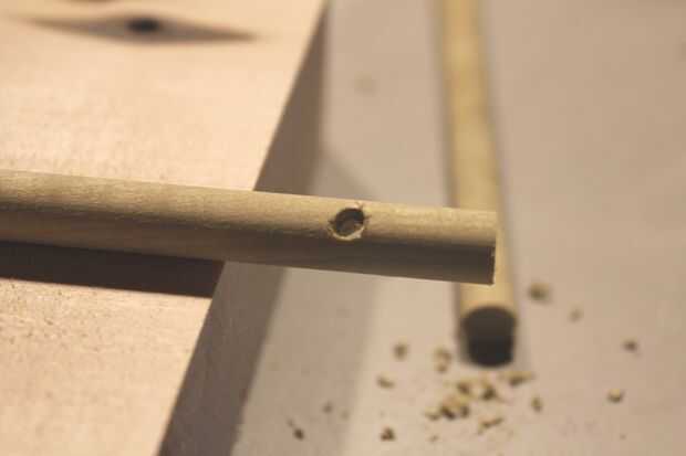 Empiece por tomar una broca que es ligeramente más grande que el cable de calibre 8 y taladrar un agujero en un extremo de la varilla de pasador.