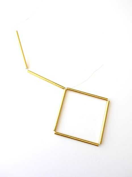 Inserte dos pajitas cortas más en el alambre largo (deje el cable corto suelto hasta el final).