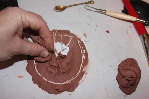 • También podría raspar la arcilla de la superficie de trabajo y asegúrese de seleccionar las partículas pequeñas de yeso y volver a usar.