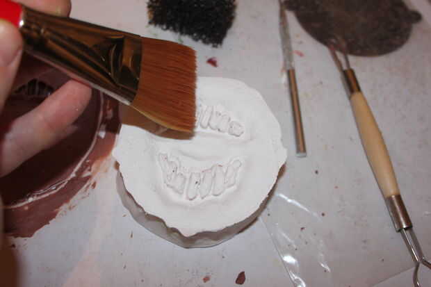 Retire con cuidado la pared luego cepillo de partículas diminutas de arcilla que puede ser un poco atascado.