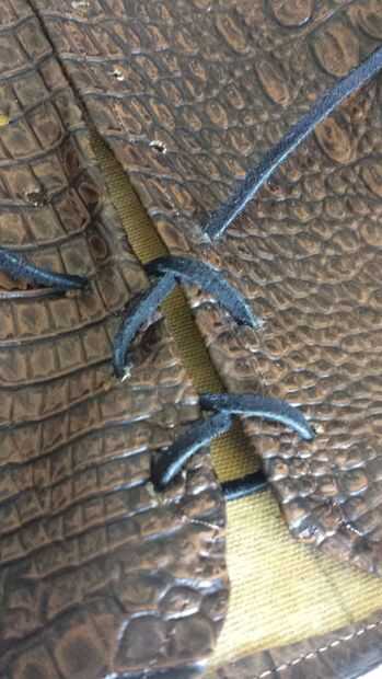 Con este hecho, perforado agujeros cada pulgada encima del frente de la abertura del chaleco. Entonces usé cordón de cuero negro para ATA para arriba. Lo confieso, sentí un poco como estaba poniendo en un corsé. No me quejo, porque veía muy bien y yo aún pude respirar.