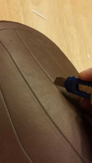 El marrón 5 mm espuma de artesanía fue dado una capa de modge podge. Esto ayudó a darle más de un aspecto de cuero.