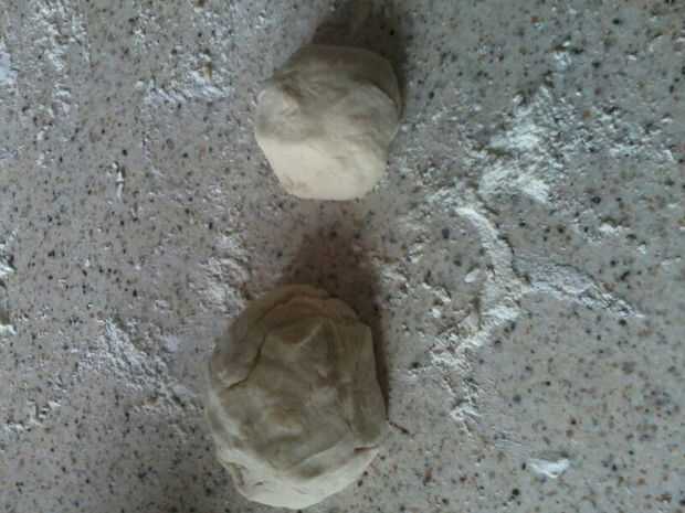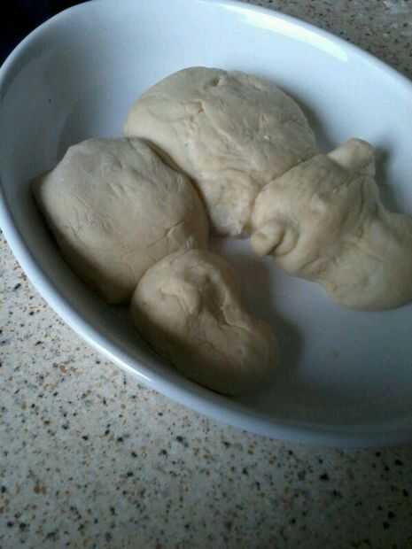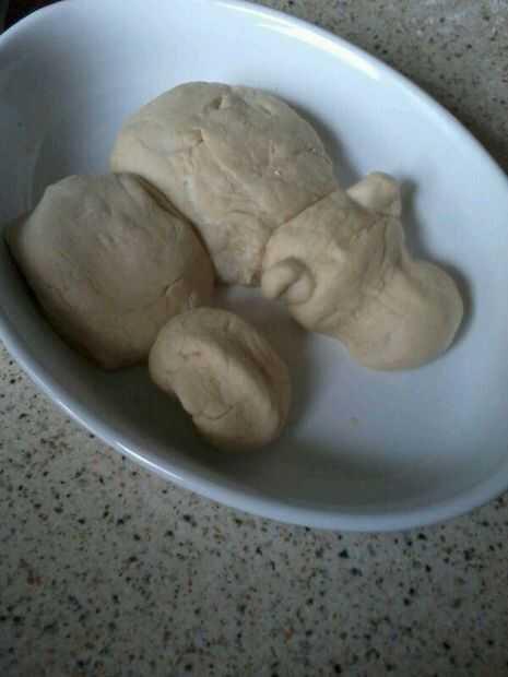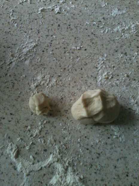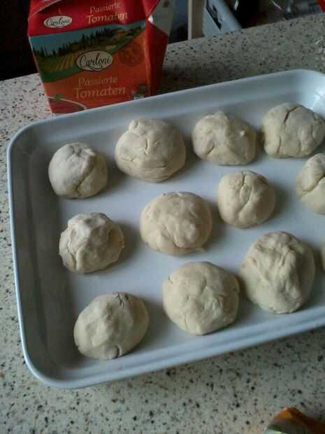 Para Bubblepizza normal tomar piezas pequeñas de masa y forman casi en bolas.