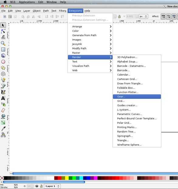 Entonces usé estas mediciones como insumos para el diseño de mi cubierta de engranaje utilizando Inkscape.