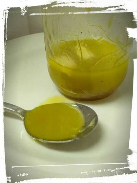 Mezclar los ingredientes del aderezo en el otro tarro y deja reposar 5 minutos hasta media hora y luego deseche las mitades de ajo.