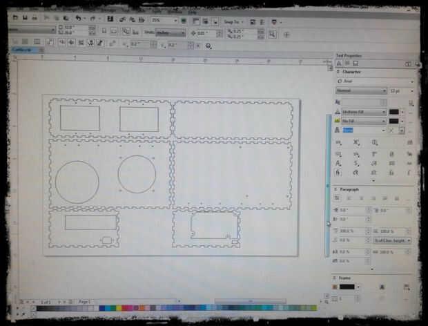 He importado el espacio en blanco en sketchup pro y coloca todos los agujeros donde debían ir, entonces envió a Corel Draw ya que es el programa que utilizamos para operar el cortador del laser en Yukonstruct.
