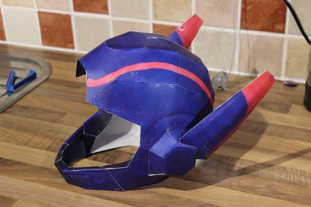 El casco se convirtió en papercraft usando Pepakura, fue entonces láser corta para facilitar (pero podría ser corte de mano) y luego montado.