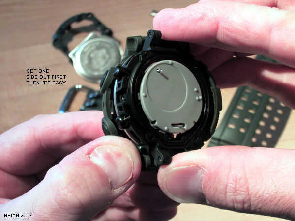 Una vez que esa primera ventaja el módulo interno entero debe saltar derecha. Ser muy cuidado de no disturbar el resorte pequeño sobresale la parte posterior del módulo en la parte superior (posición de 11:00 en la imagen siguiente).