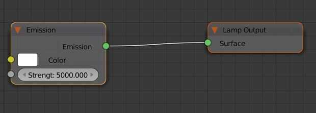 Cuando se crea un nuevo proyecto, automáticamente se agrega una fuente de luz. Seleccione la fuente de luz y haga clic en los nodos de uso. Cambiar la fuerza de emisión a 5000.