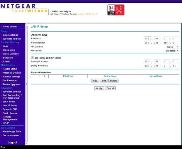 Esto nos ayudará a establecer nuestra dirección estática para el servidor. En la misma máquina Windows prueba su habilidad para configurar su router. Usted tendrá que usar el manual del usuario para saber cómo conectarse al router y entrar en su cliente de configuración. Mayoría de las veces solo abres hasta cualquier navegador en una máquina conectada al router y luego escriba la dirección de puerta de enlace del router: 192.168.1.1 en mi caso. Las contraseñas deben ser algo parecidas a admin o simplemente contraseña. Una búsqueda en Google o el manual de operación, obtendrá esta información. En el cliente de configuración de router determinar el intervalo de direcciones IP que el router asigna automáticamente a las máquinas conectadas.