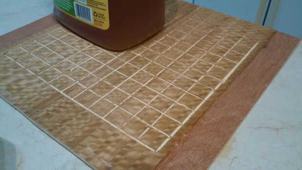 Sólo podía dibujar o pintar en las plazas, pero opté por usar mi herramienta giratoria para tallar ranuras en la placa en vez de dibujar líneas porque pensé que sería más fresco.
