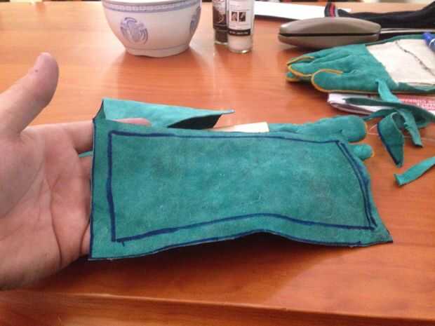 Bastante fácil solo un guante utiliza la parte superior o es multa agarró mi paz de trocear la madera trazada con mi marcador añadido alrededor de 5mm alrededor de la línea hacia fuera (para doblar hacia abajo de la madera) luego utiliza un par de tijeras nada especial solo un par normal perforado un conjunto en un lugar y corte
