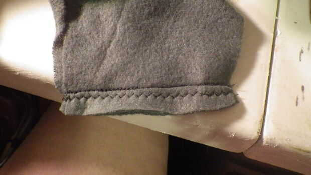 * A continuación son las mangas, manguitos enchufables juntos borde sin doblar y coser sólo la línea recta utilizando una puntada recta y zig-zag (no coser cada extremo cerrado). una vez cosido brazalete acabado doblando en una 1/2" y costura (Foto 5) usé una puntada zig-zag para el pun ¢ o así para darle un poco más la decoración pero puede usar lo que sea.