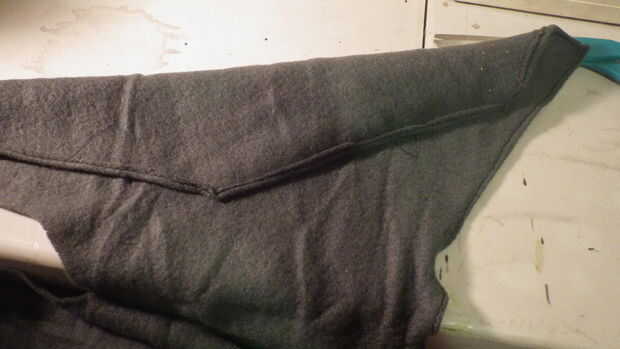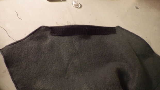 * Para terminar chaleco doblez 1/4" de material a lo largo de la parte exterior del chaleco y coser con puntada recta para hacer un borde acabado (Foto 8 y 9) para cerrar el chaleco me decidí por Velcro. Si utilizas velcro Asegúrese de poner la parte dura hacia afuera para no rayar y el suave hacia adentro. También puede coser las dos piezas delanteras juntas solapadas o botones. Elijas lo que elijas pat a sí mismo en la parte trasera porque se hace una sola pieza.