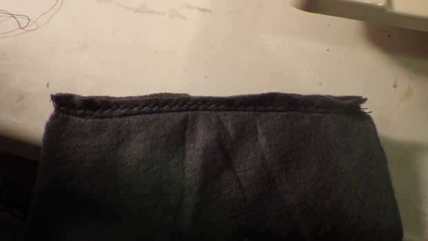 * Empezar por coser los hombros y los lados del chaleco junto, uso una recta Puntada media pulgada de borde de material y seguir con una puntada zig-zag o borde aumentó para la fuerza adicional. No tengo una remalladora, así que hice un zig-zag que puede verse en las fotos segunda y terceros. Una vez cosido el borde cortado del material por lo que s sobre 1/4 de pulgada del borde de zigzag (Foto 3)