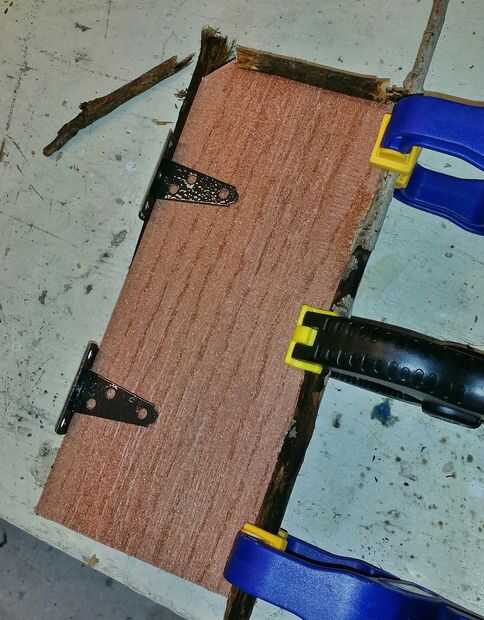 Después de las bisagras configurar, pegué el siguiente ramita encima de ellos.