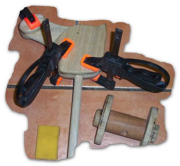 El eje se fija con pegamento en el agujero de la caja del eje y luego en el fin de cabeza en el agujero en la cabeza izquierda cuando las mejillas se pegan a la parte central (ver las fotos del plan).