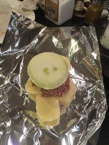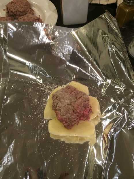 ingredientes:Carne de res molidaZanahoriasApioBlanco o Vadalia cebollaManzana roja deliciosaPatata (cualquier tipo hará)Extras:AlbahacaSalsa WorcestershireSal y pimientaPaso 1: Baller Tome la carne molida y lo embalamos en muchas bolas tamaño cuarto.