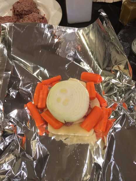 A continuación se pondrá cada una de las verduras en la hoja. Esto es donde cada persona pone personalizar su comida. La voluntad de los niños como hacer sus propios así que ayuden a. Usted necesitará a medida que avanza la temporada cada pieza. Me suelen comenzar con la patata y luego agregar la carne y otras verduras. Si usted no usa carne o tiene una carne que no tiene grasa (pechuga de pollo) luego rocíe el papel con un poco de aceite para que no se pegue. Si no estoy usando carne o una carne con poca grasa añadir 2 cucharadas de agua para cada bolsa. Esto ayudará a los vegetales a cocinar. Si tienes extra vegetales hacen una bolsa de verduras. No olvides añadir un poco de aceite en la parte inferior y 2 cucharadas de agua. Esto también es ideal si alguien es vegetariano porque se puede crear uno sin carne.