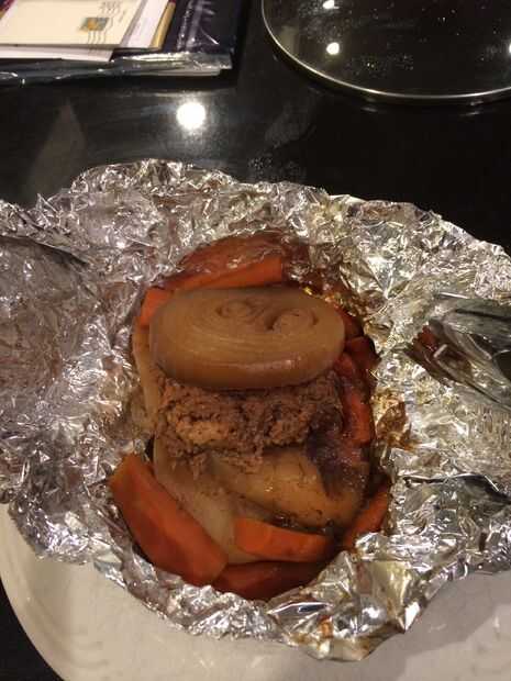Sacar las comidas y ábrala con cuidado. Son realmente calientes. Yo generalmente pour mina en un colador (uno a la vez) porque hay jugos en la parte inferior que puede que no desee en su plato. Ahora tienes una comida única para cada persona. Con sólo la carne y verduras que les gusta. Diviértete y probar diferentes carnes y verduras. También es una muy fácil limpieza.