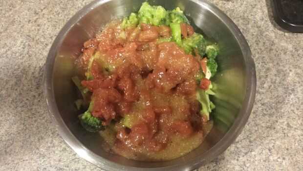 Combine el brócoli, los tomates escurridos y aderezo en un tazón y revuelva todo bien buena. Que establece para un poco.
