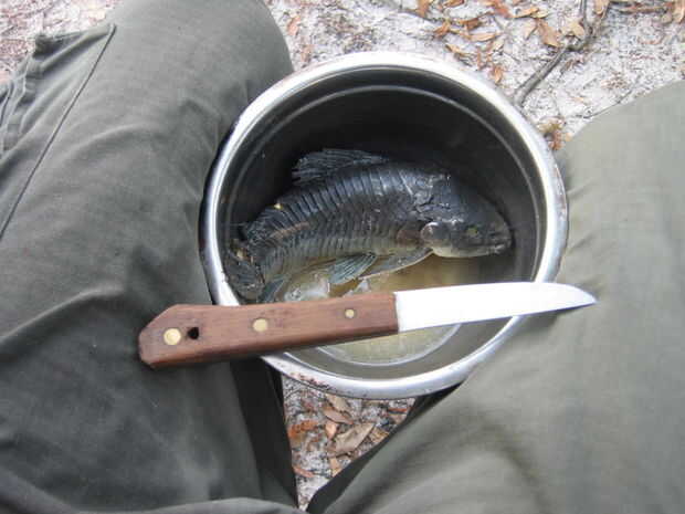 La carne es muy sabrosa y muy amarillo. Escamas gruesas encajan de una manera muy interesante, pero no podía pensar en ningún uso para ellos.