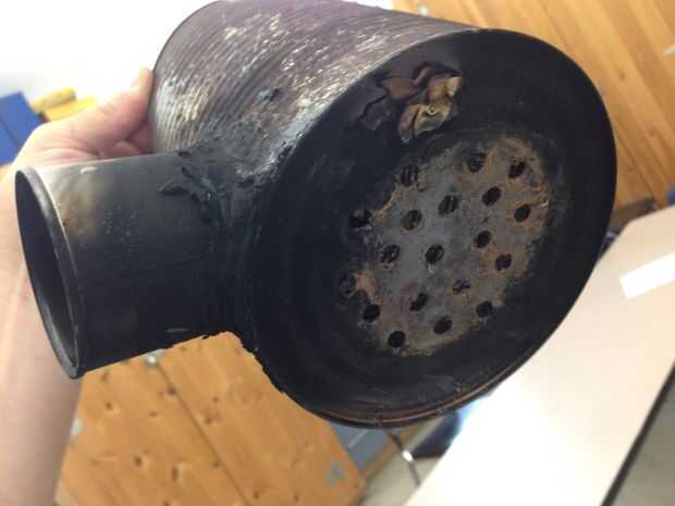 • Aplique masilla alrededor de donde el tubo con el orificio en la parte exterior de la lata más grande, esto asegurará que el tubo no se mueva fuera de lugar.