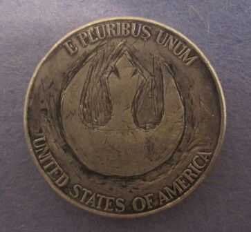 Use un níquel para hacer un anillo o un colgante para su novia. Haga clic en el enlace de la versión para hombre.Herramientas:Plaza de la correderaHoja de afeitarSacador de centroPequeño martilloMartillo grandeMandril (yo usé una palanca)Herramienta