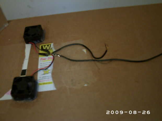 Marque primero, donde los fans iremos y cortar sólo el agujero. Ahora ponen los ventiladores a la silicona para sellar bien los bordes. Deje que el silicio seco durante unas 12 horas para obtener mejores resultados. Cuando la seca de silicio, conecte los cables con cinta eléctrica. De cinta el alambre largo para que su suspensión no.