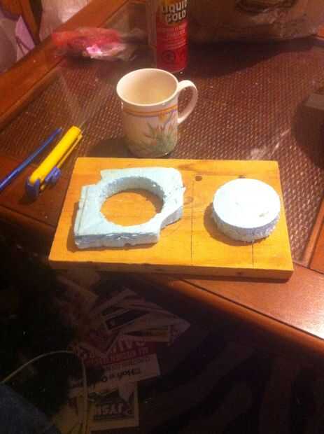 Tuve algunos espuma extra poniendo alrededor. Trazado las velas base espuma luego recortar con un cuchillo del exacto.