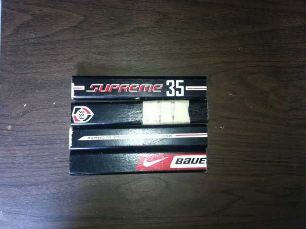 cuando estaba creciendo, hockey es un deporte muy popular en mi ciudad natal.  Aprender a patinar fue el primer paso, pero después de se trataba con un palo de hockey.  Mi hermano mayor me enseñó a un palo de hockey de la cinta cuando era más joven.
