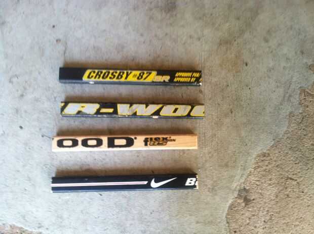 ADVERTENCIA: la segunda vez construí un Sixer de Hockey traté de economizar mi madera dividiendo (o ripear) los pedazos de palo con una sierra de mesa. Esto no funciona bien. La fibra de vidrio de embalaje en los palos desgastados y creado un lío splintery. Si tus palos no demasiado viejos puede todavía poder hacer esto, pero va a cambiar todas las cotas de que referencia en este Instructable.