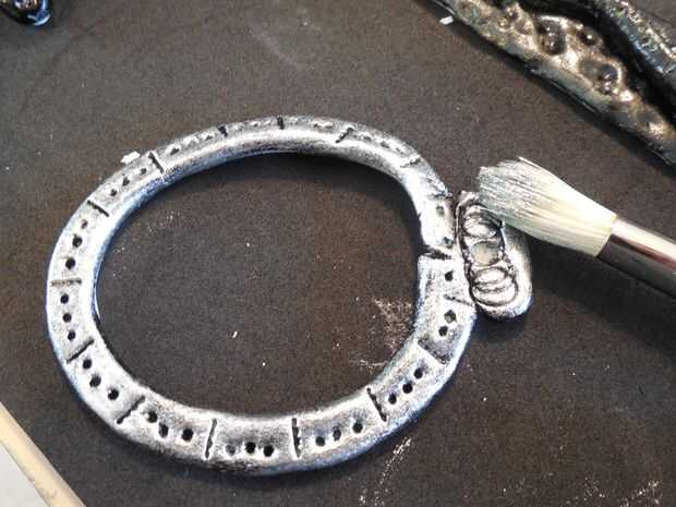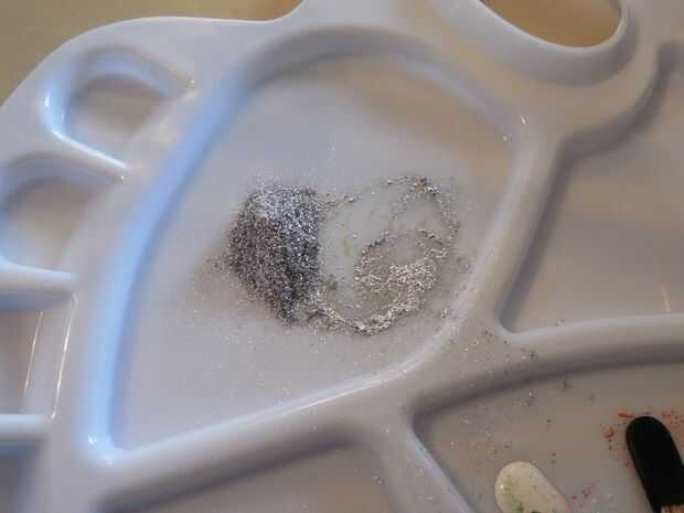 Muy simple, en color negro de gel. Deje que las piezas set un poco, tomar el polvo de pétalo del estaño y un poco de Vodka y pincel seco sobre las piezas. Probar y dejar algunas áreas en negro, este es tu sombra.