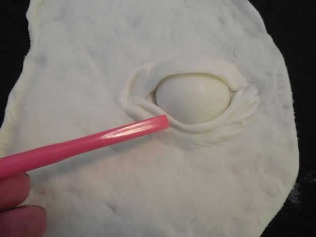 Puede usar un molde o hacer una media bola con la mano, pegamento abajo pedazo de piel.