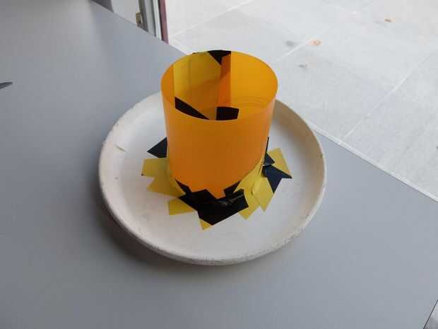 Snij de bodem uit de doos en kleef dobladillo amplio aan een ondergrond. Que erop dat de gelijmde stukken na de tweede gietbeurt moeten verwijderd worden.
