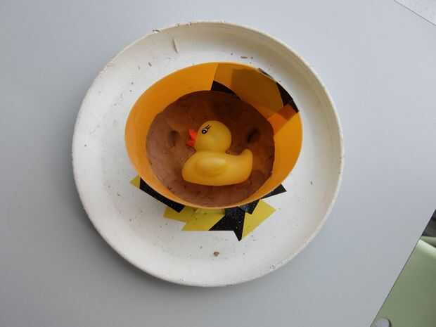Begin reunió de bodem van de doos te vullen met de boetseerklei. Druk je stuk hierop aan en zorg dat de klei het stuk goed omsluit zodat er geen ondersnijdingen zijn de meer.