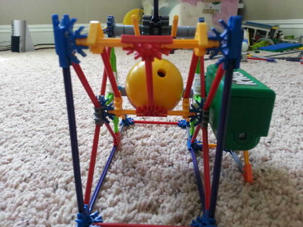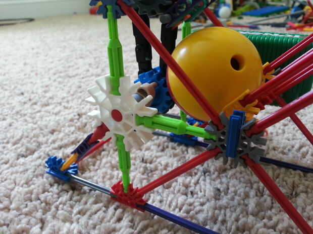 subió con una hélice grande que se puede hacer para apilarse encima de sí mismo. Se hace para las máquinas de la bola de K'nex y sólo funciona con las bolas de K'nex originales. Este elemento requiere sin embargo muy pocas piezas, pero el producto fi