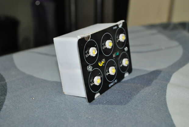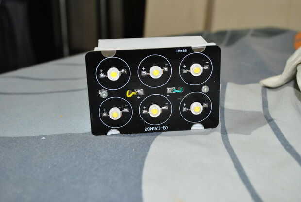 Después de que su circuito está listo, sólo venden LEDs plata 6 LED en serie, estas placas están disponibles en el mercado fácilmente. Después de soldar los LEDs a la placa de LED (que usa como disipador de calor para el LED). Ahora Conecte los terminales del circuito y tornillo de la caja.