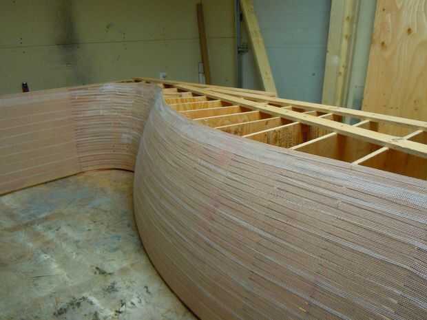 Luego pensé que debería añadir algo de fuerza y forman las curvas un poco más. Spray adhesivo las costillas y añadir cinta de paneles de yeso de fibra de vidrio a la forma entera. Simplemente pegue abajo o cortar cualquier cosa que salga de la curva.